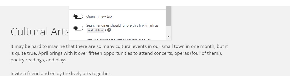 Home › Forums › Support › Edit block off page This topic has 3 replies, 3 voices, and was last updated 2 years, 11 months ago by Fernando. Viewing 4 posts - 1 through 4 (of 4 total) Author Posts March 30, 2023 at 7:36 am #2588816 Charles I’m having a problem over the past couple of weeks in the block editor with the popups for entering hyperlinks displaying off the page making it impossible to paste the link. https://gettysburgconnection.org/wp-content/uploads/2023/03/Screenshot-2023-03-30-103501.jpg Any ideas? Thanks. March 30, 2023 at 9:00 am #2589117 DavidStaff Customer Support Hi there, are you using Yoast ? If so, is there still an issue if you temporarily disable yoast ? March 30, 2023 at 1:44 pm #2589507 Charles I’ll check on that, but I’ve discovered that if you scroll down away from the paragraph you’re editing, the popup will appear center page. March 30, 2023 at 5:32 pm #2589671 Fernando Customer Support Hi Charles, I see. How did disabling Yoast go? Author Posts Viewing 4 posts - 1 through 4 (of 4 total) You must be logged in to reply to this topic. Log In Username: Password: Keep me signed in Log In