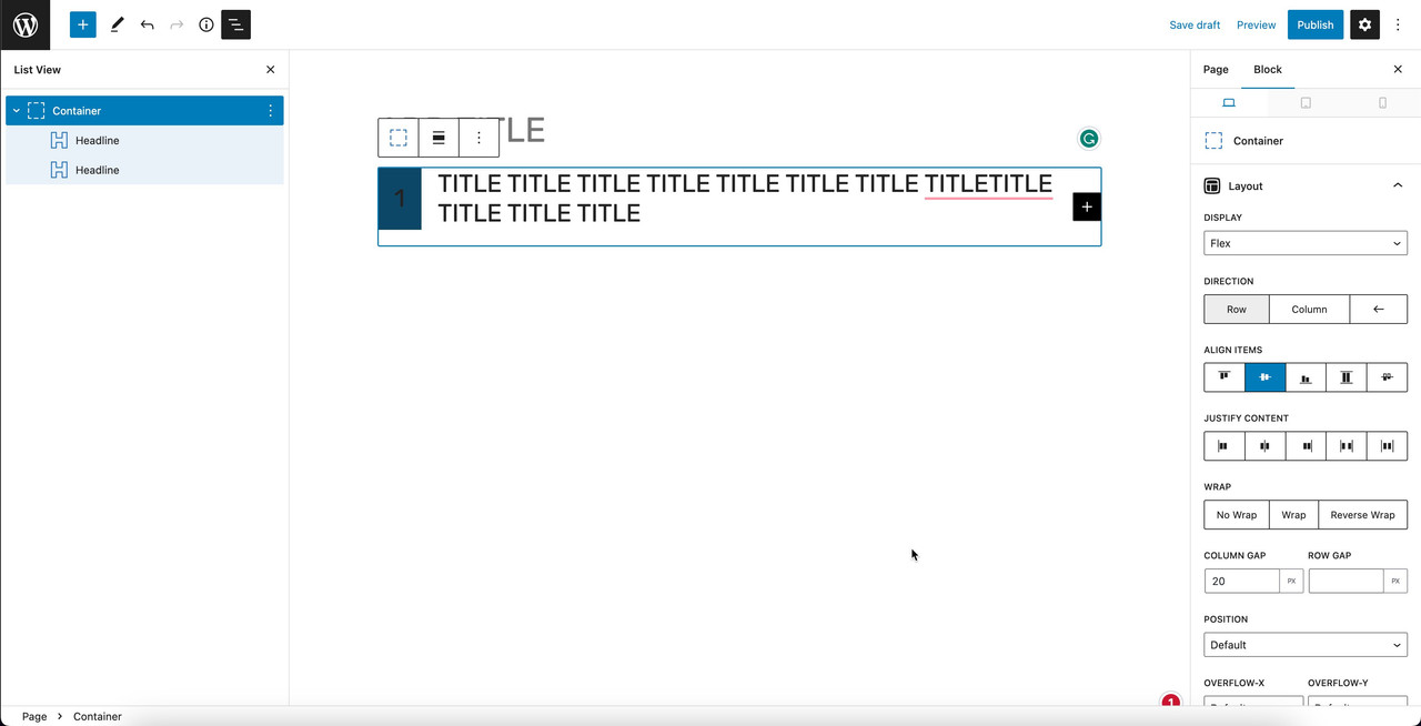 Do you have GenerateBlocks plugin? If so, you can add 2 headline blocks into a container block, and set the container block to display:flex, align-item: center, column gap: 20px in the layout panel.