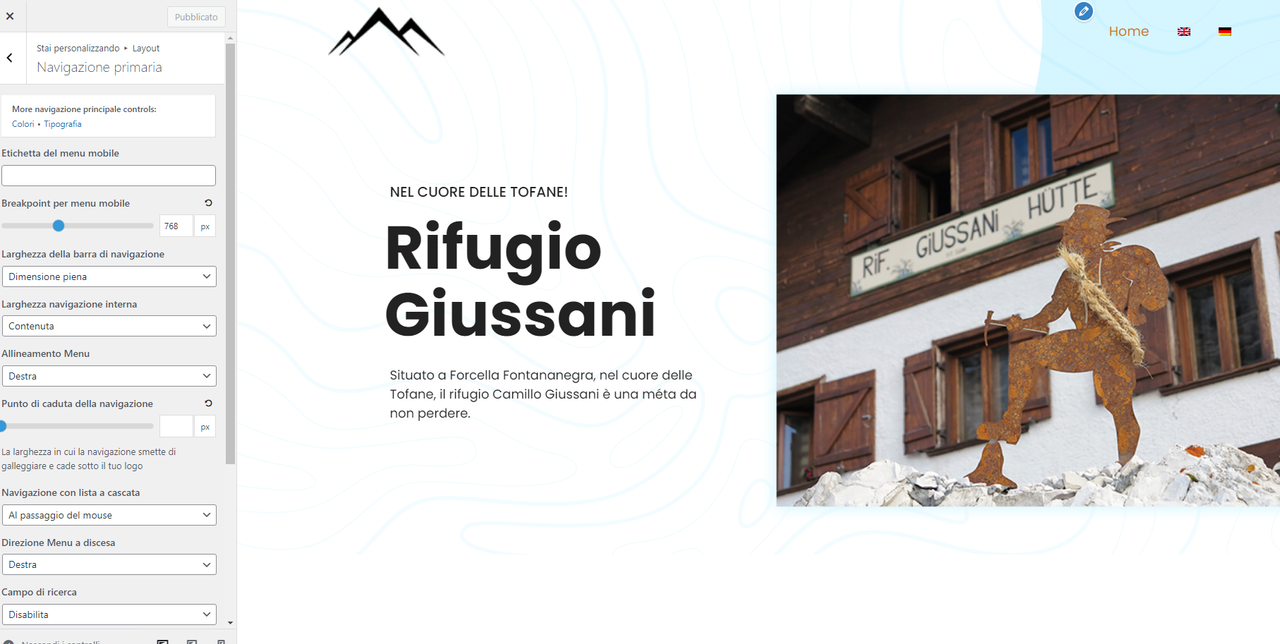 1 – I went to Customizer > Layout > Primary Navigation, I added some text in the Mobile Menu Label field and I save.