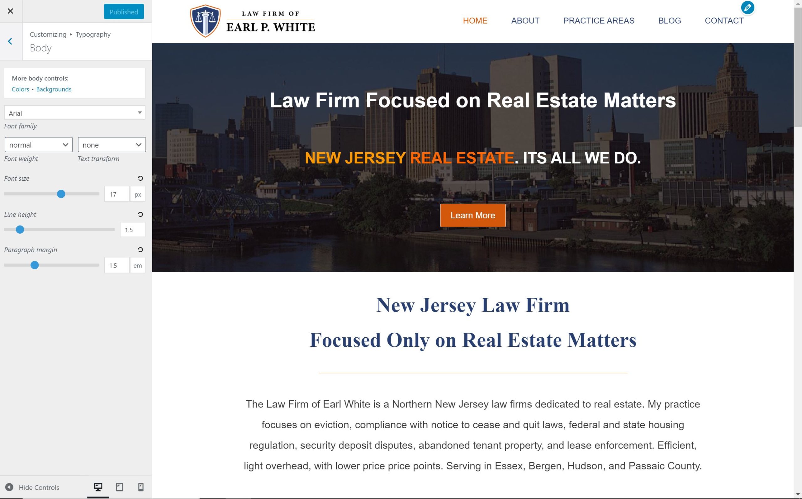 For testing purposes, I set Paragraph Margin to 5 em. You can see on the home page hero section – it does make it much larger so I did correctly set the Paragraph Margin to 5.